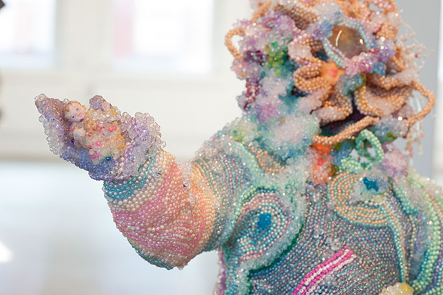 The artist who's work I am looking at for this post is Raúl de Nieves. He is a mixed media sculptor and his sculptures are created with small beads like the ones that you can get at the craft store. Below is one of his pieces, Day(Ves) of Wonder.