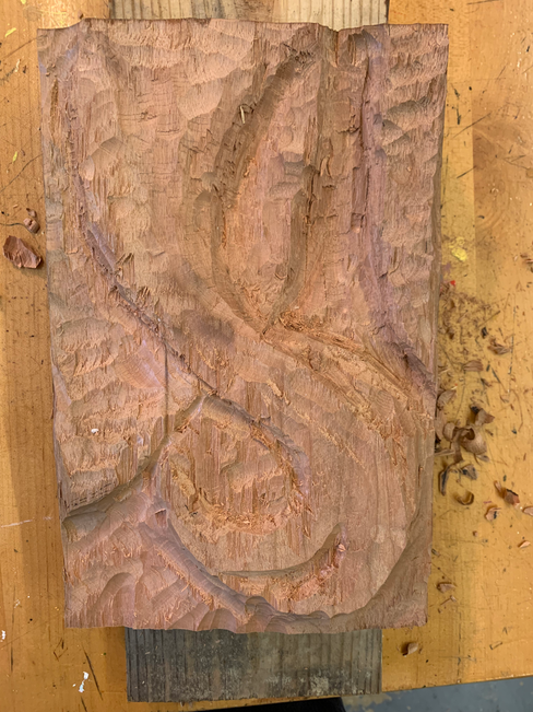 I am getting close to being able to do detail work on my woodcarving. The main thing that I need to work on is where the ball is. The hardest part of that will be trying to make it look like the thing that is grabbing the ball is actually curving around the ball. It is kind of hard to reach that part with the chisel so I think I'll probably need to use a dremel once I have carved more of the larger details. Other than that and fixing up a few more details, I'll be ready to work on finishing up the carving once we learn how.