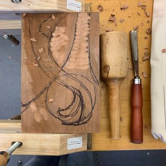 So far on my "It's About Time" project, I have created my design and I am starting to carve it. The first picture is of my drawing of it on the wood and some of the cuts I made to just get a feel for using the tools. Right now I am just carving general shapes. One of my bigger challenges so far has been to not cut too deep on the edges because when I do, the wood splinters and a much bigger piece than I wanted ends up coming off. I'm getting better at carving more carefully in those areas but I mess up sometimes. Luckily its in an area that I'm planning on carving even deeper. Whenever I make a cut that looks good and is nice and smooth, it is very satisfying although after a while it's also very tiring. I'm finally getting to some areas where I can start to work on carving out a sharp edge to make depth which is exciting but I still have to cut much deeper in some areas.